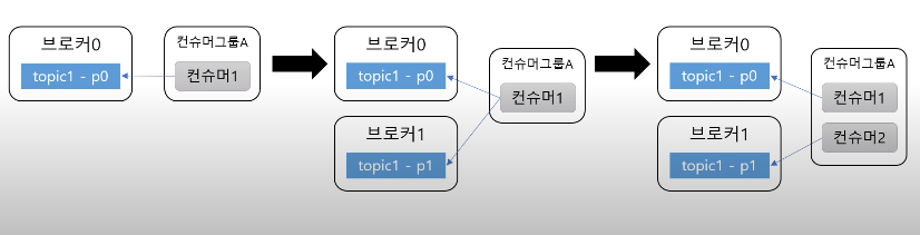 그림처럼 시스템 트래픽이 높아지면 브로커를 추가해서 클러스터를 확장할 수 있고, 컨슈머 속도가 느려질 경우에는 컨슈머 그룹에 컨슈머를 추가할 수 있습니다.