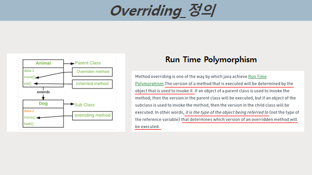 오버라이딩은 동적 바인딩을 통해 구현됩니다. 동적 바인딩에 대한 정의입니다.